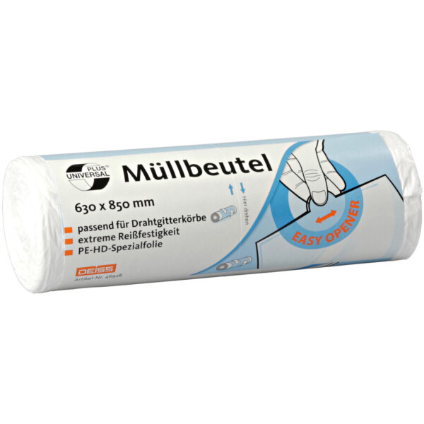 Deiss - Müllbeutel 60-80l 8my weiß 630x850, Klimaneutral, 9 Rollen pro Karton