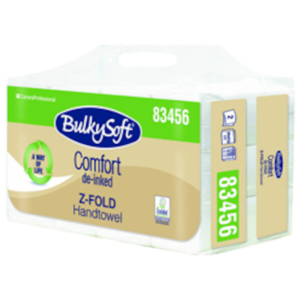 Falthandtuch, Prägung BulkySoft, Breite Blatt 21,5 cm, Falzung Z-Falz, Farbe weiß, 2-lagig.