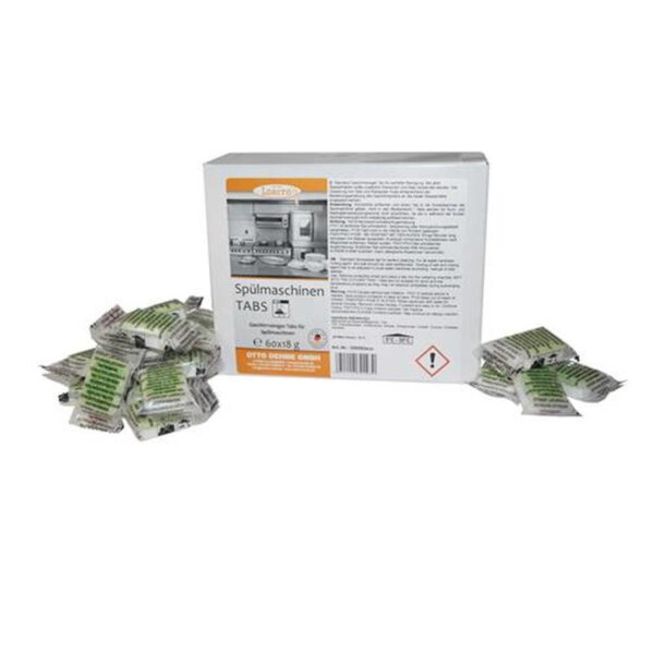 Alkalische Reinigertabs zur maschinellen Geschirrreinigung in Gewerbe, Industrie und Haushalt. Phosphatfreie Geschirr-Reiniger Tabs für glänzende Spülergebnisse. Die Geschirr-Reiniger Tabs tragen das Europäische Umweltzeichen (EU-Ecolabel). 60 Tabs pro Packung