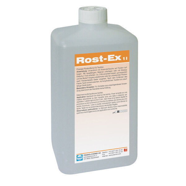 Rostentferner, entfernt Rostflecken, einsetzbar auf säurebeständigen Belägen im Innen- und Aussenbereich.